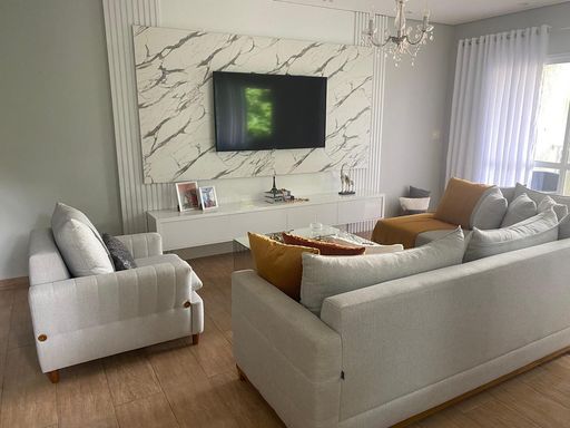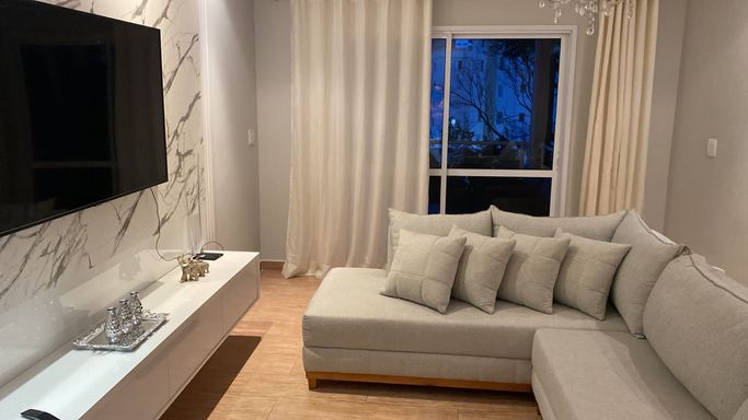 Sala espaçosa, perfeita para receber amigos e criar momentos inesquecíveis
